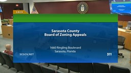 - Sarasota County Board of Zoning Appeals Meeting: 05/09/2022